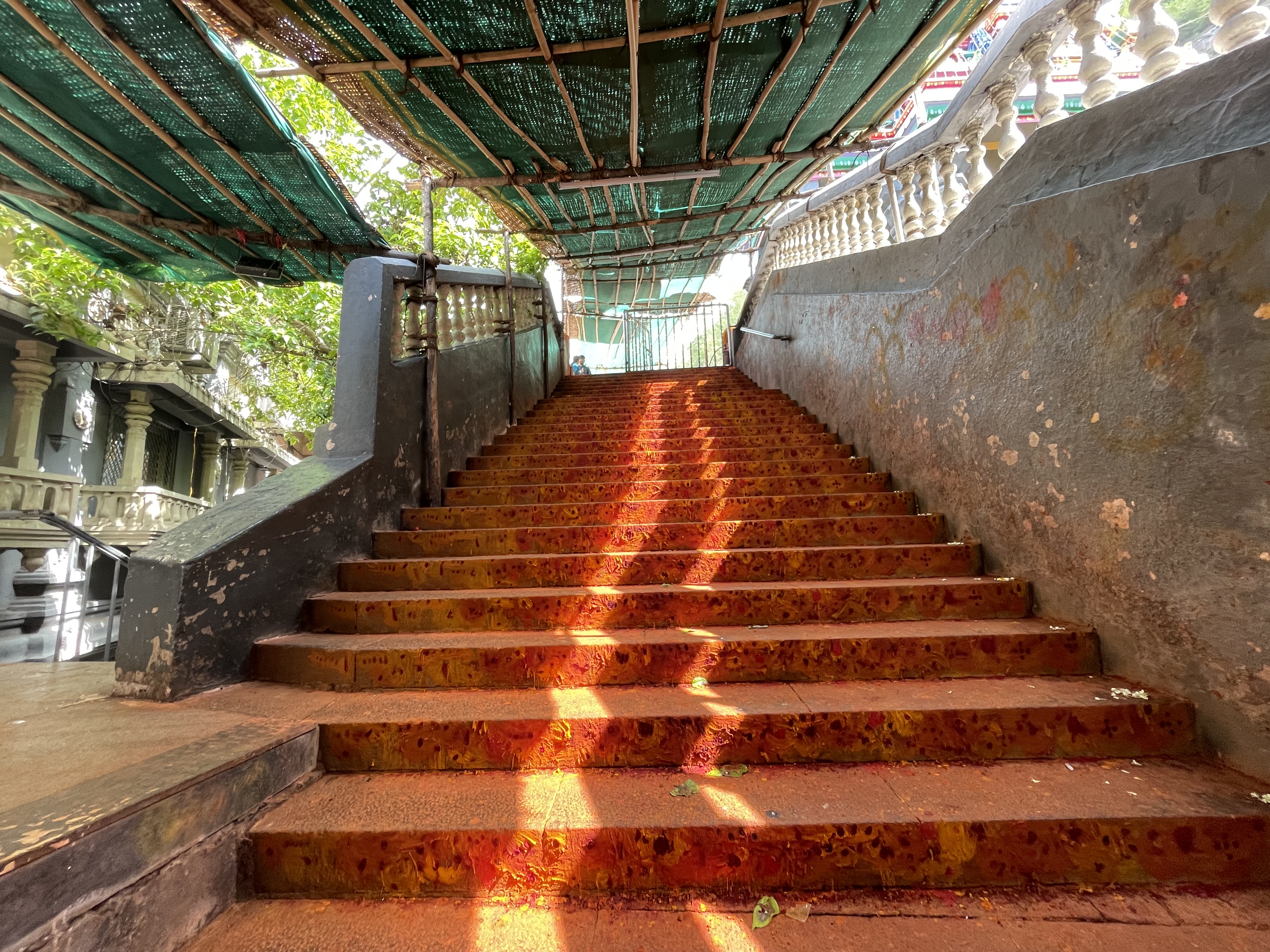 During the Navarathri festival, the temple celebrates by adorning the goddess in various forms. These include Balatripura Sundari, Gayathri, Annapoorna, Mahalakshmi, Saraswathi, Lalitha Tripura Sundari, Durga Devi, Mahishasura Mardini, and Raja Rajeswari Devi. The "Theppotsavam" (boat festival) on the Krishna River is a highlight of the Vijaya Dasami celebrations. Despite the availability of modern amenities like a ghat road, many devotees choose the traditional climb up the temple steps, often decorating them with turmeric powder and vermilion as part of their vows.