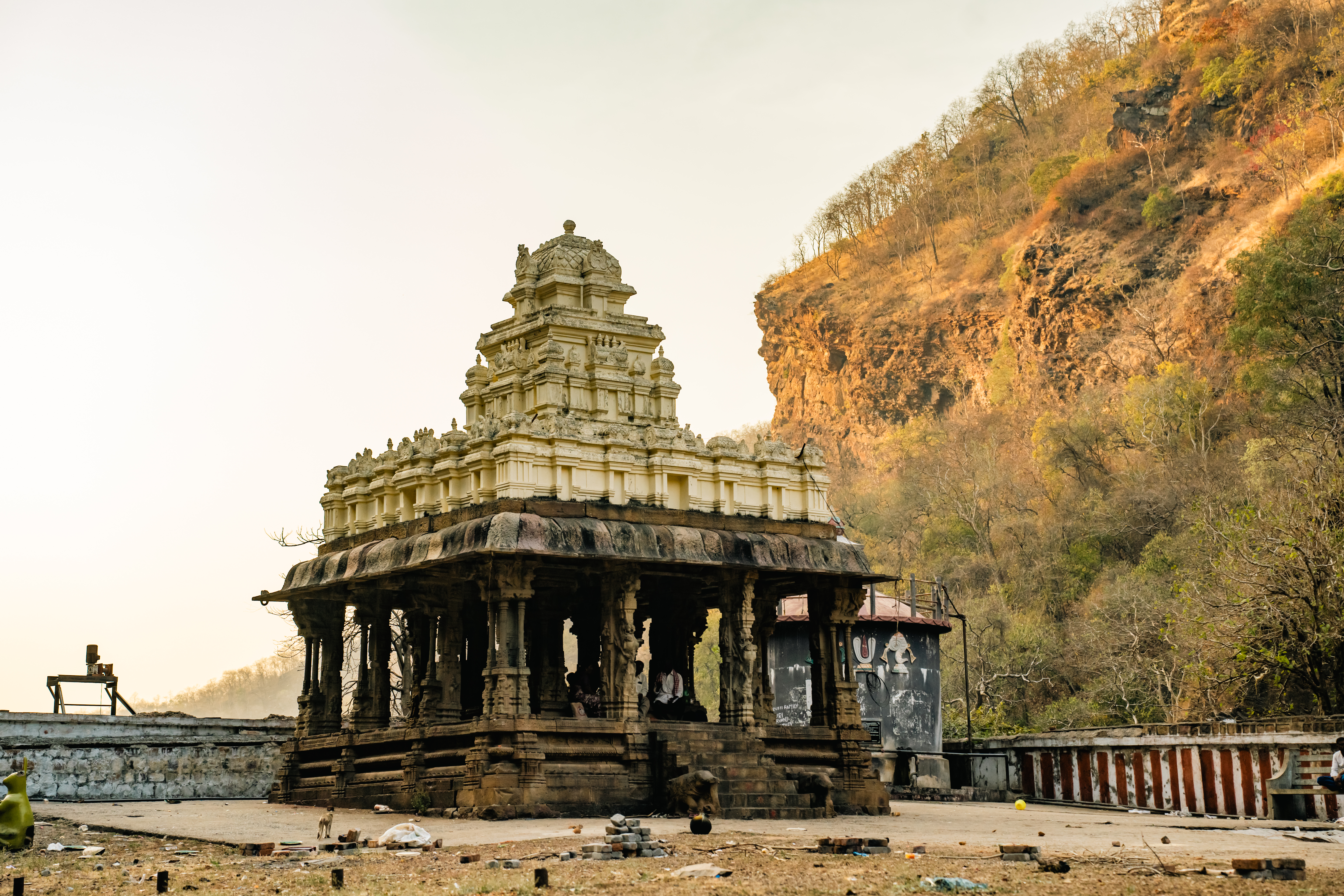 Ahobilam, located approximately 400 kilometers from Hyderabad in the Nallamala Hills of Andhra Pradesh, is a revered pilgrimage site dedicated to Lord Narasimha. Known as the Avatara Sthala of Narasimha, the temple complex features nine shrines (Nava Narasimha) spread across the hills, showcasing intricate Dravidian and Vijayanagara architectural styles. According to legend, this is where Lord Vishnu appeared to vanquish the demon Hiranyakashipu. The site includes relics of the demon's palace and the Ugra Sthambha, the pillar from which Narasimha emerged. Devotees believe that worshiping at Ahobilam's shrines can bring prosperity and dispel sins. The temple's history is enriched by contributions from various dynasties and continues to be managed by the Ahobila Mutt. Ahobilam offers a unique blend of spiritual heritage, epic lore, and architectural grandeur, attracting pilgrims and tourists alike.